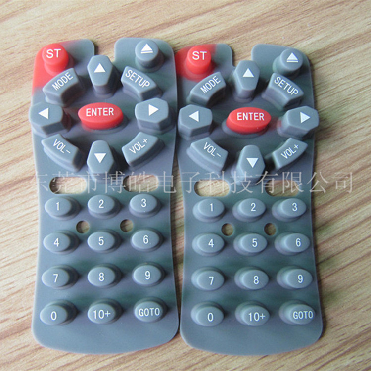 - 產(chǎn)品簡介:導(dǎo)電膠按鍵屬于是遙控器硅膠按鍵功能的衍生名稱,遙控器硅膠按鍵是導(dǎo)電的硅膠按鍵,所以就有導(dǎo)電膠按鍵一詞的叫法了。
